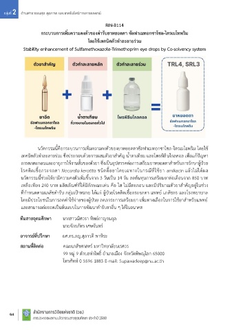 กระบวนการเพิ่มความคงตัวของต ารับยาหยอดตา ซัลฟาเมทอกซาโซล-ไตรเมโทพริม อุปกรณ์อัจฉริยะส าหรับการวัดระยะการเอื้อมเพื่อระบุความเสี่ยงในการล้มของผู้สูงอายไทย