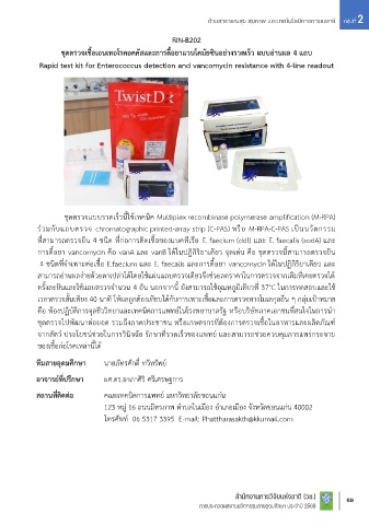 ได้สะดวก รวดเร็วและทั่วถึง ผลงำนนี้ได้รับกำรพัฒนำจำกข้อมูลผู้ป่วยเด็กอำยุ 0 ถึง 15 ปี ในประเทศไทย ครั้งละยนและใชแถบตรวจจ ำนวน 4 อน นอกจำกน ยังสำมำรถใชอุณหภูมิเดียวที่ 37°C ในกำรทดสอบและใช ้