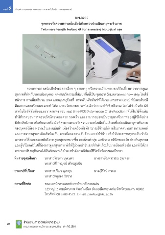มีประสิทธิภำพ เพื่อพัฒนำเครื่องมือที่สำมำรถตรวจวัดควำมยำวเทโลเมียร์ในเลือดเพื่อประเมินอำยุทำงชวภำพ องค์กำรอำหำรและยำ ส ำหรบกำรตรวจวเครำะห์ยำทถกลักลอบผลิตและจ ำหนำย ซงปกตตองรอผลกำรตรวจ
