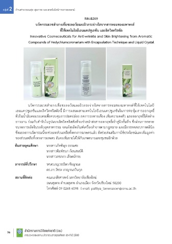 นวตกรรมเวชส ำอำงเพอชะลอวยและผิวกระจ่ำงใสจำกสำรหอมของมหำหงส์ทใช้เทคโนโลย ี