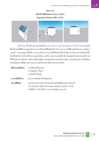 นวตกรรมเครื่องล้ำงผักและผลไมดวยกระบวนกำร Electrooxidation ร่วมกับกำรฉำยแสงยูวี
