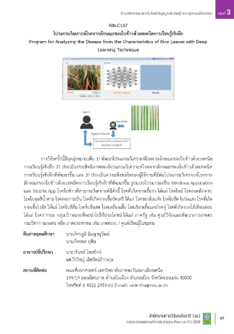 ทีมสายอุดมศึกษา นำงสำวกัณฐิกำ ไชยพูล ลักษณะของใบข้ำวดวยเทคนิคกำรเรียนรู้เชงลึกที่พัฒนำขึ้น รูปแบบโปรแกรมเป็น Windows Application