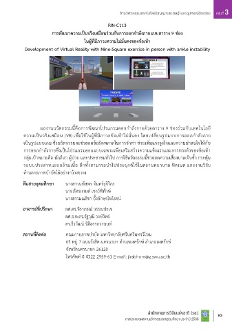 RIN-C112 การพัฒนาความเป็นจริงเสมือนร่วมกับการออกก าลังกายแบบตาราง 9 ช่อง