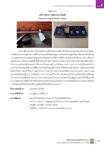 ผลงำนที่สร้ำงมำคือ เครื่องวัดค่ำควำมยืดของสำยไฟฟ้ำ ซึ่งเป็นอุปกรณ์ส ำหรับใชแทนชดทดสอบ
