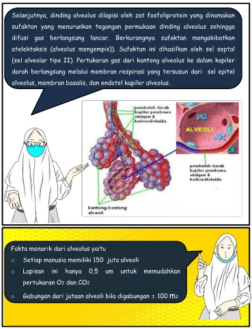 Selanjutnya, dinding alveolus dilapisi oleh zat fosfoliprotein yang dinamakan