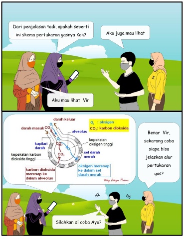 Dari penjelasan tadi, apakah seperti ini skema pertukaran gasnya Kak? Aku juga mau lihat Aku mau lihat Vir Benar Vir, sekarang coba siapa bisa jelaskan alur pertukaran gas? Silahkan di coba Ayu?