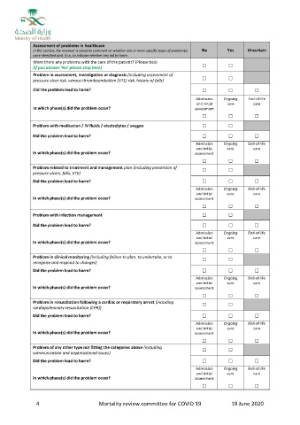 In this section, the reviewer is asked to comment on whether one or more specific types of problem(s) No Yes Uncertain