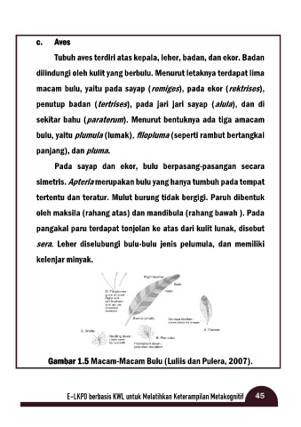 macam bulu, yaitu pada sayap (remiges), pada ekor (rektrises),