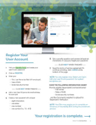 Register Your User Account 1. Visit your Benefits Portal and create your user ID and password. 2. Click on REGISTER. 3. Enter your • First, Last Name (as filed with employer), • Date of Birth • Social Security Number —— CLICK NEXT WHEN FINISHED —— 4. Add a new User ID (personal email address, for example). 5. Create a new password with at least: • eight characters • one letter • one number • one symbol (i.e., * & + # $). 6. Set a security question and answer (at least six characters), in case you forget your password. —— CLICK NEXT WHEN FINISHED —— 7. Read the terms of service agreement. To continue enrolling, click I AGREE at the bottom of the page. NOTE: You only register once. Return and log in with your user ID and password. Our system recognizes you. HAVE THE FOLLOWING INFORMATION HANDY Provide eligible dependents’ and beneficiaries’: • Full names • Dates of birth • Social security numbers ...and the Documents required to upload for Dependent Verification. NOTE: Your Plan may require you to complete an Evidence of Insurability (EOI) during the enrollment process. Your registration is complete. Make the Connection 3