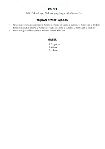 · Siswa menyebutkan pengertian al-Asma‘u al-Husna (al-’Alim, al-Khabir, as-Sami’, dan al-Bashir).