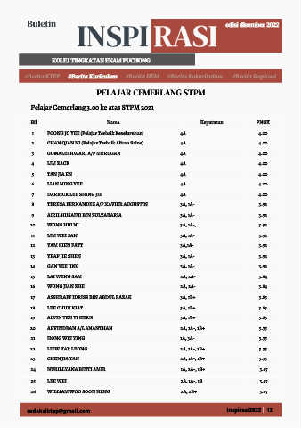 Pelajar Cemerlang 3.00 ke atas STPM 2021