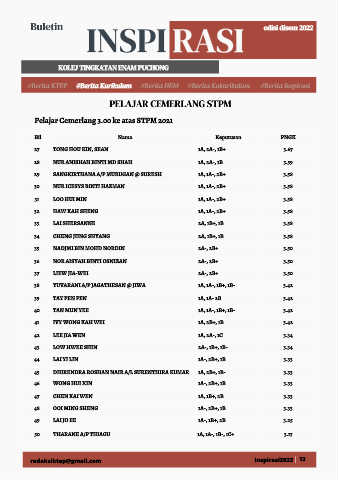 Pelajar Cemerlang 3.00 ke atas STPM 2021