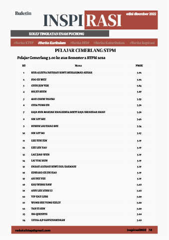 Pelajar Cemerlang 3.00 ke atas Semester 2 STPM 2022