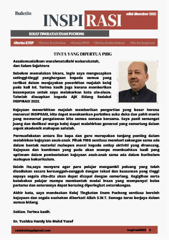 Akhir kata, saya mendoakan Kolej Tingkatan Enam Puchong sentiasa beroleh