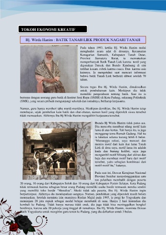 Hj. Wirda Hanim : BATIK TANAH LIEK PRODUK NAGARI TANAH