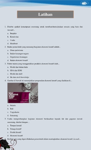 2. Badan pemerintah yang menaungi kegiatan ekonomi kreatif adalah...
