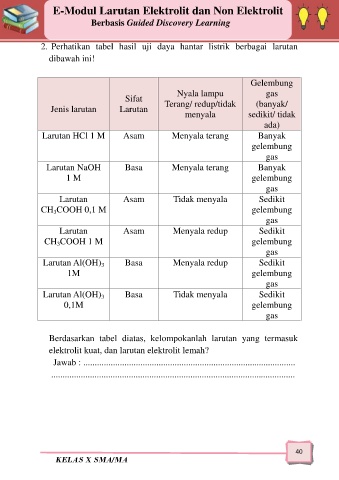 2. Perhatikan tabel hasil uji daya hantar listrik berbagai larutannn