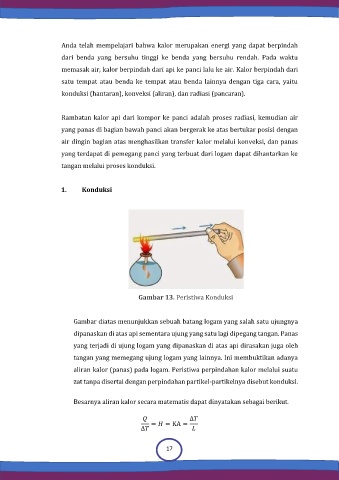 zat tanpa disertai dengan perpindahan partikel-partikelnya disebut konduksi.