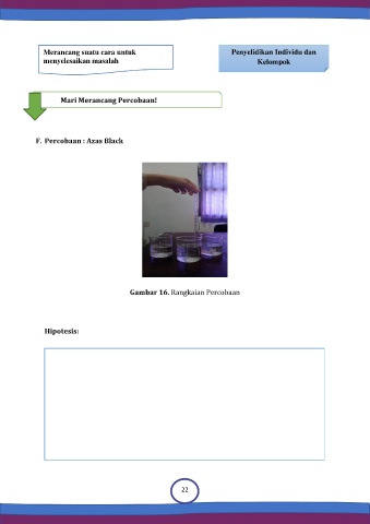 Merancang suatu cara untuk Penyelidikan Individu dan menyelesaikan masalah Kelompok Mari Merancang Percobaan! F. Percobaan : Azas Black Gambar 16. Rangkaian Percobaan Hipotesis: 22