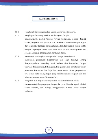 KI 1 : Menghayati dan mengamalkan ajaran agama yang dianutnya.