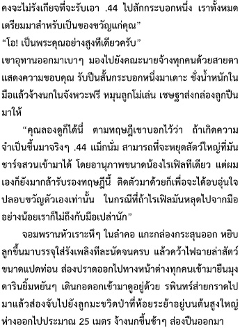 จอมพรานหวเราะหๆ ในลาคอ แกะกลองกระสนออก หยบ