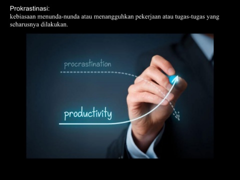 Prokrastinasi: kebiasaan menunda-nunda atau menangguhkan pekerjaan atau tugas-tugas yang seharusnya dilakukan.