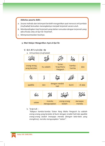 a. Secara individu dan kelompok berlatih mengartikan ayat menurut arti perkata