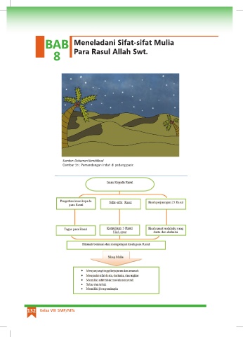 BAB Meneladani Sifat-sifat Mulia 8 Para Rasul Allah Swt. Sumber: Dokumen Kemdikbud Gambar 7.1 : Pemandangan indah di padang pasir. 132 Kelas VIII SMP/MTs
