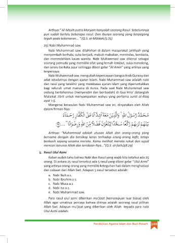 orang. Di antara 25 rasul tersebut ada 5 rasul yang diberi gelar “Ulul Azmi”