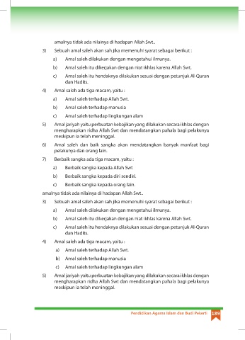 3) Sebuah amal saleh akan sah jika memenuhi syarat sebagai berikut :