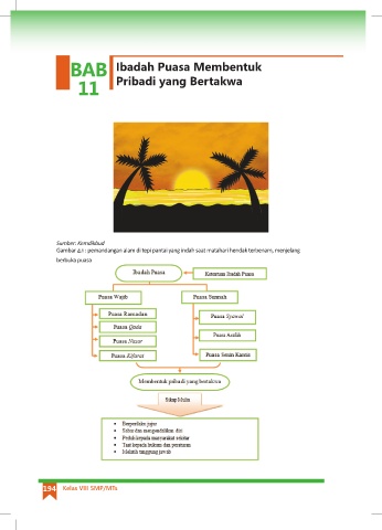 BAB Ibadah Puasa Membentuk 11 Pribadi yang Bertakwa Sumber: Kemdikbud Gambar 4.1 : pemandangan alam di tepi pantai yang indah saat matahari hendak terbenam, menjelang berbuka puasa 194 Kelas VIII SMP/MTs