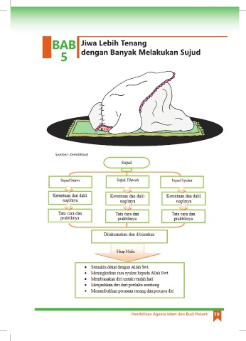 BAB Jiwa Lebih Tenang 5 dengan Banyak Melakukan Sujud Sumber: Kemdikbud Gambar 3.1 : Seorang anak perempuan sedang bersujud. Pendidikan Agama Islam dan Budi Pekerti 79