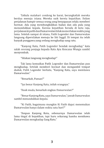 duduk, Patih Logender berkata, “Kanjeng Ratu, saya membawa
