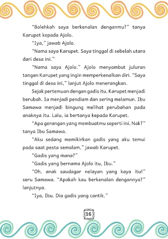 anaknya itu. Lalu, ia bertanya kepada Karupet.