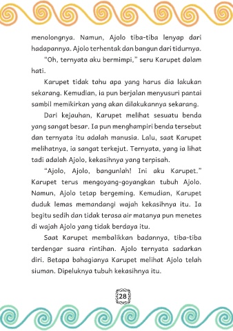 “Ajolo, Ajolo, bangunlah! Ini aku Karupet.”