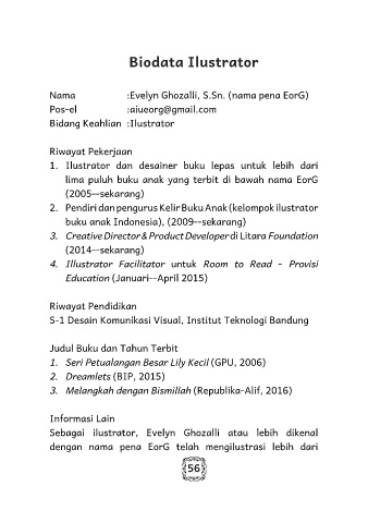 Nama :Evelyn Ghozalli, S.Sn. (nama pena EorG)