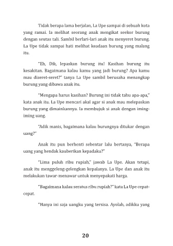 kata anak itu. La Upe mencari akal agar si anak mau melepaskan