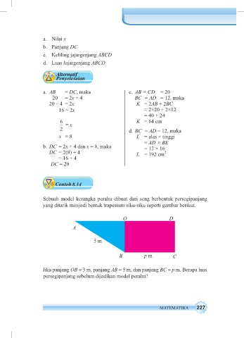 b. DC = 2x + 4 dan x = 8, maka = 12 × 16