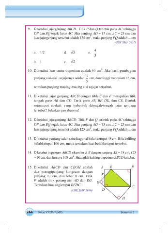 9. Diketahui jajargenjang ABCD. Titik P dan Q terletak pada AC sehingga