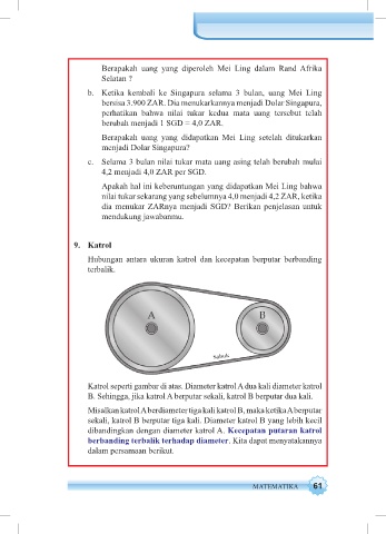 sekali, katrol B berputar tiga kali. Diameter katrol B yang lebih kecil