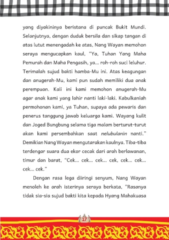 Demikian Nang Wayan mengutarakan kaulnya. Tiba-tiba