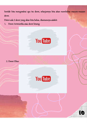 Setelah kita mengetahui apa itu deret, selanjutnya kita akan membahas macam-macam deret. Disini ada 2 deret yang akan kita bahas, diantaranya adalah: 1. Deret Aritmetika atau deret hitung 2. Deret Ukur 10