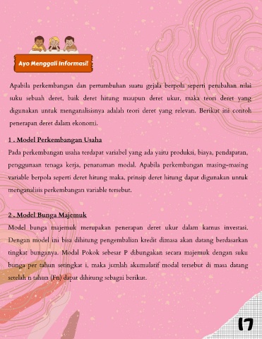 Model bunga majemuk merupakan penerapan deret ukur dalam kamus investasi.