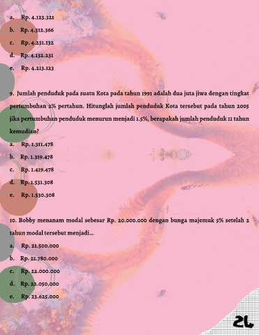 10. Bobby menanam modal sebesar Rp. 20.000.000 dengan bunga majemuk 5% setelah 2