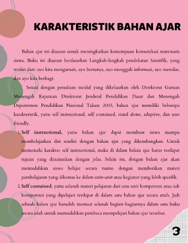 memenuhi karakter self instructional, maka di dalam bahan ajar harus terdapat
