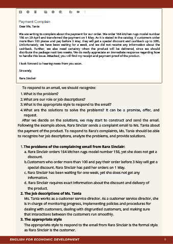 Following the example above, Rara Sinclair sends a complaint email to Ms. Tania about