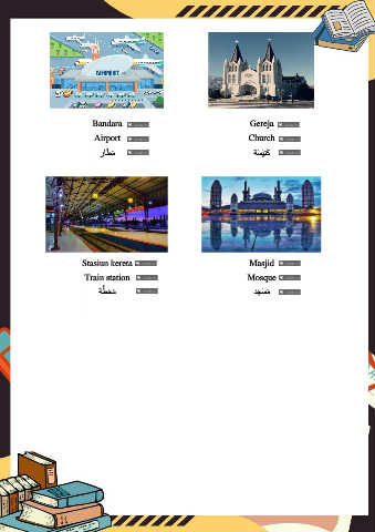 Bandara Gereja Airport Church َ راطم ةسْيِنَك َ َ Stasiun kereta Masjid Train station Mosque َّ ةطحم دجْسم َ َ ِ َ