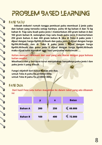bahan B. Tiap satu buah paku jenis I memerlukan 200 gram bahan A dan