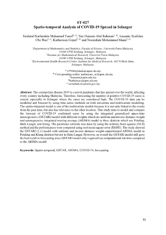 Petaling and Klang districts but not in Hulu Langat. However, as overall the GSTARI model still gave