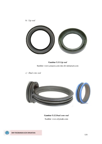 b) Lip seal Gambar 5.11 Lip seal Sumber: www.amazon.com dan dir.indiamart.com c) Dual cone seal Gambar 5.12 Dual cone seal Sumber: www.diytrade.com SMK PENERBANGAN AERO DIRGANTARA 123